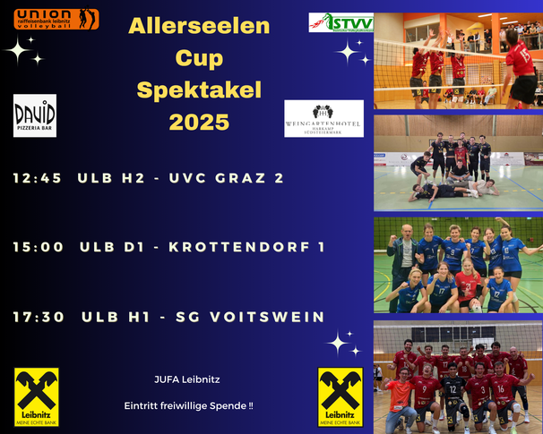 Die Union Leibnitz Volleyball ist der Verein für alle Freunde des Volleyballsports in der Südsteiermark. Unser Verein ist zu einer festen Größe im steirischen Volleyballsport gewachsen - mit Team in der 2. Bundesliga Herren sowie in fast allen Klassen der STVV Bewerbe sind wir stark präsent. Ein besonderer Fokus liegt im Bereich Nachwuchs - wir wollen der Jugend die Freude am Ball&Teamsport näher bringen!